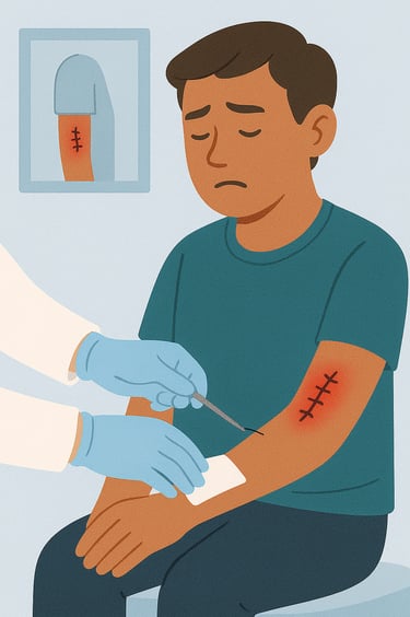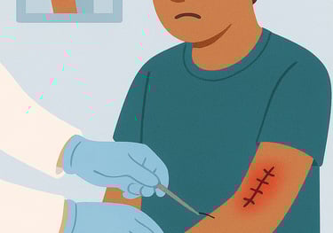 Nous assurons la prise en charge de toutes les plaies, qu’elles nécessitent une suture, des agrafes ou un soin spécifique. Chaque blessure cutanée est évaluée pour garantir une cicatrisation rapide et sans complication. Les soins sont réalisés dans des conditions d’hygiène strictes par du personnel formé.